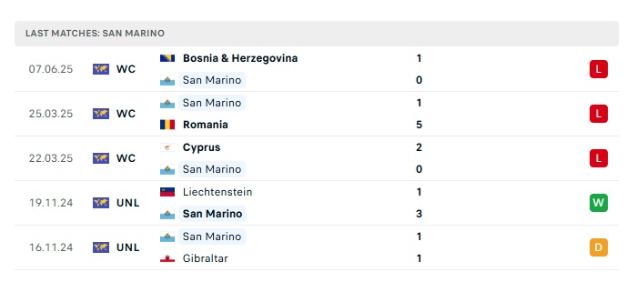 - Phong độ gần đây San Marino