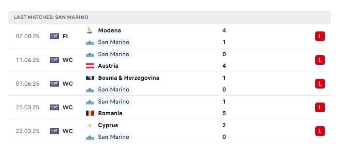 - Phong độ gần đây San Marino