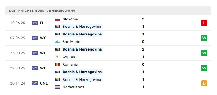 - Phong độ gần đây Bosnia & Herz