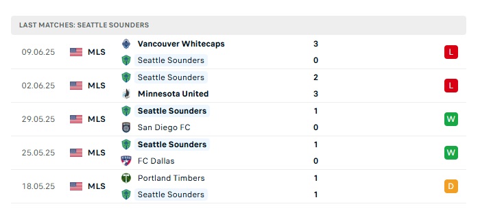 • Phong độ gần đây Seattle Sounders