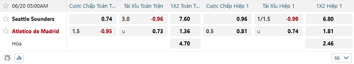 Soi kèo châu Á, kèo Seattle Sounders vs Atletico Madrid