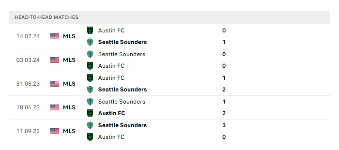 Lịch sử đối đầu Seattle Sounders vs Austin FC