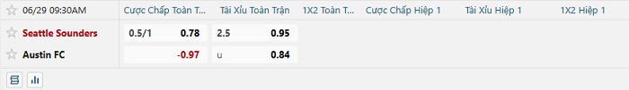 • Kèo tỷ số H1 Seattle Sounders vs Austin FC: 1-0