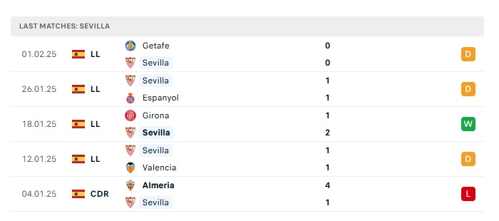 • Phong độ gần đây Sevilla