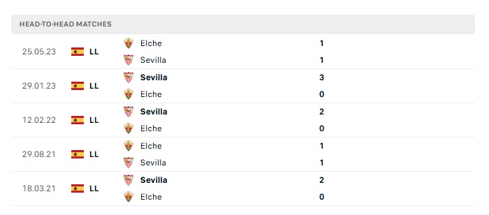 • Kèo tỷ số H2 Sevilla vs Elche: 0-0