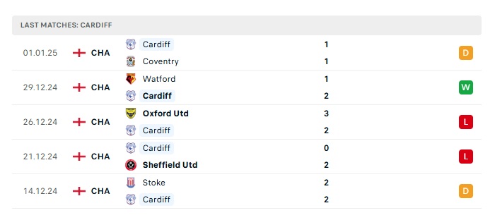 - Phong độ gần đây Cardiff City