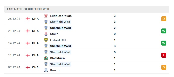 • Phong độ gần đây Sheffield Wed.
