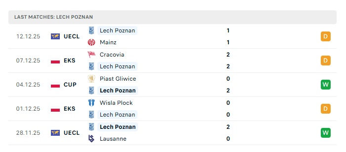 - Phong độ gần đây Lech Poznan