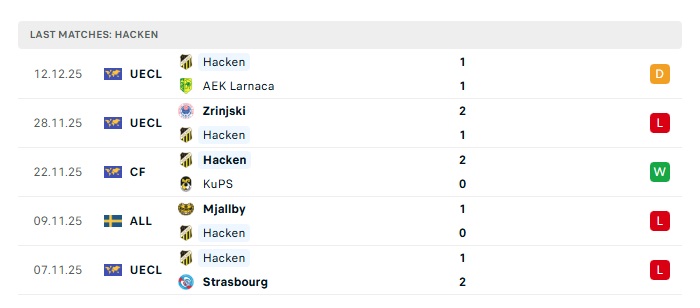 - Phong độ gần đây Hacken