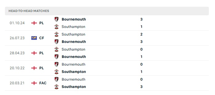 Lịch sử đối đầu Southampton vs Bournemouth