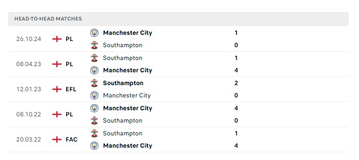 - Kèo tỷ số H2 Southampton vs Man City: 0-3