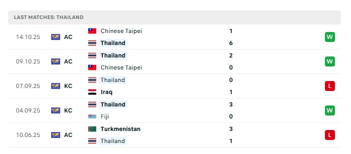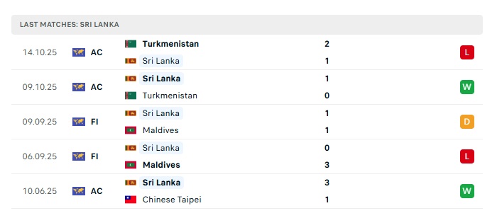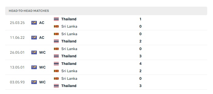 Phong độ gần đây Sri Lanka vs Thái Lan