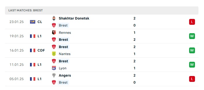 Phong độ gần đây Stade Brestois vs Real Madrid