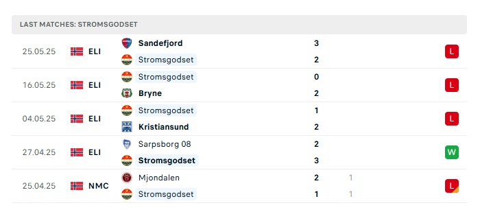 - Phong độ gần đây Stromsgodset