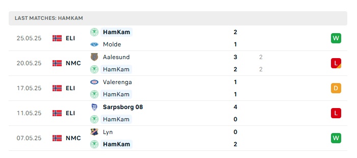 Phong độ gần đây Stromsgodset vs Hamkam