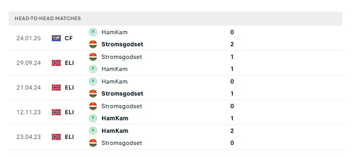 Lịch sử đối đầu Stromsgodset vs Hamkam
