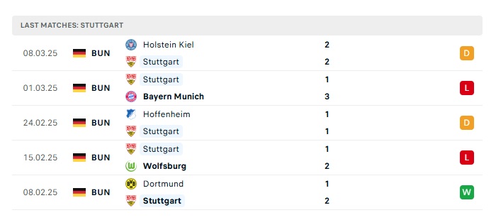 - Phong độ gần đây Stuttgart