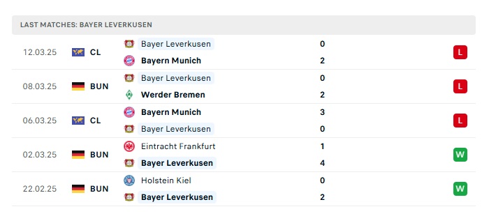 - Phong độ gần đây Bayer Leverkusen
