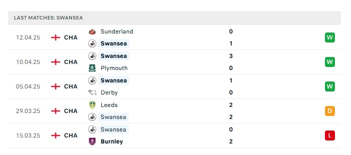 - Phong độ gần đây Swansea City