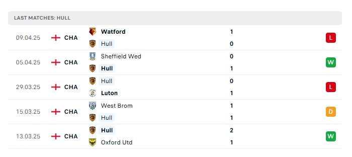- Phong độ gần đây Hull City
