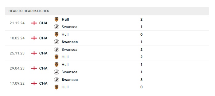 Phong độ gần đây Swansea City vs Hull City