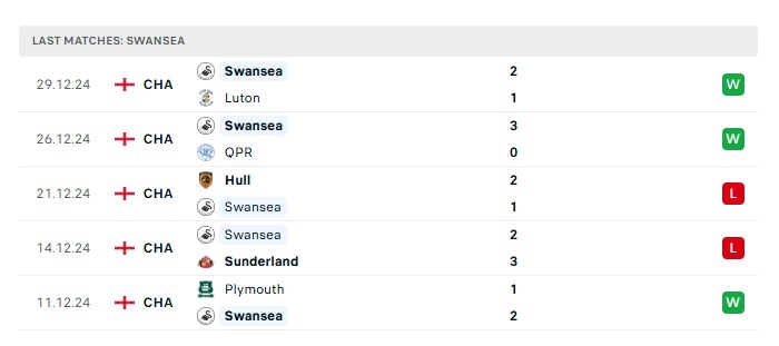 • Phong độ gần đây Swansea City