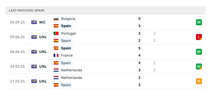 - Phong độ gần đây Tây Ban Nha