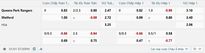 Tip kèo Châu Á hiệp 1 QPR vs Watford