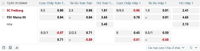 Tip kèo Châu Á full trận Freiburg vs Mainz