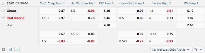 Tip kèo Châu Á hiệp 1 Girona vs Real Madrid