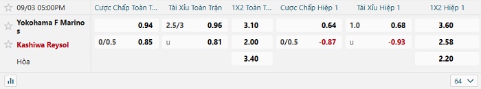 Tip kèo Châu Á hiệp 1 Yokohama F. Marinos vs Kashiwa Reysol