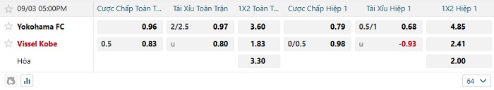 Tip kèo Châu Á hiệp 1 Yokohama FC vs Vissel Kobe