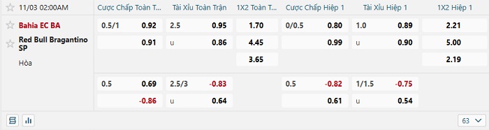 Tip kèo Châu Á hiệp 1 Bahia vs Bragantino
