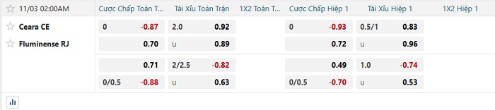 Tip kèo Châu Á hiệp 1 Ceara vs Fluminense