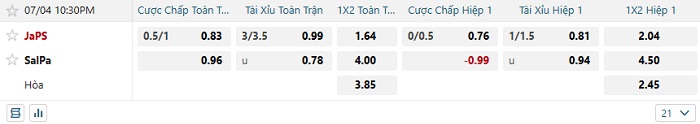Tip kèo Châu Á hiệp 1 JaPS vs SalPa