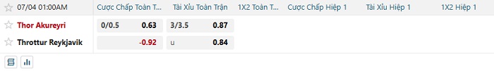 Tip kèo Châu Á hiệp 1 Thor Akureyri vs Throttur Reykjavik