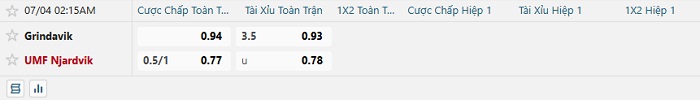 Tip kèo Châu Á full trận Grindavik vs UMF Njardvik