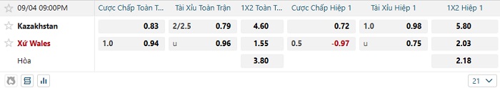Tip kèo Châu Á full trận Kazakhstan vs Wales