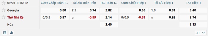 Tip kèo tỷ số Georgia vs Thổ Nhĩ Kỳ