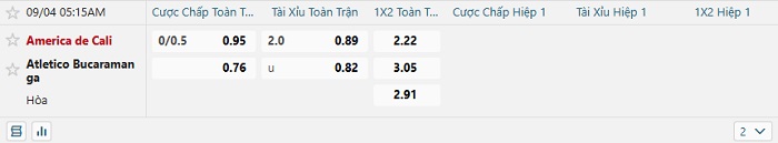 Tip kèo tỷ số America Cali vs Bucaramanga