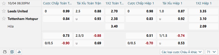 Tip kèo Châu Á full trận Leeds vs Tottenham