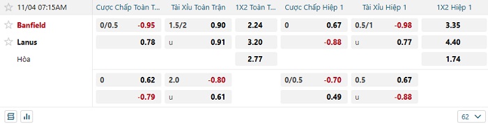- Dự đoán tỷ số hiệp 1: Banfield 0 – 0 Lanus