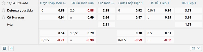 - Dự đoán tỷ số hiệp 1: Defensa y Justicia 0 – 0 Hurracan