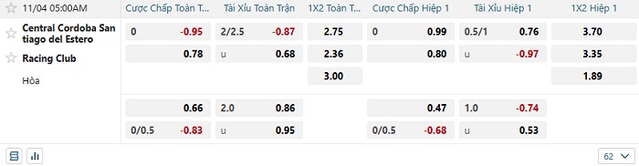 - Dự đoán tỷ số hiệp 1: Central Cordoba 0 – 0 Racing Club