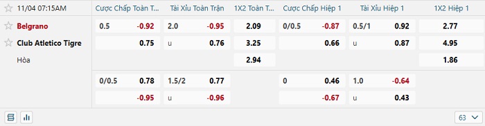 Tip kèo Châu Á hiệp 1 Belgrano vs Atletico Tigre