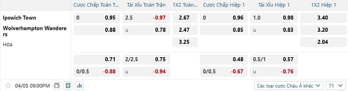 Tip kèo Châu Á full trận Ipswich vs Wolves