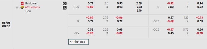 Tip kèo Châu Á full trận Hvidovre vs AC Horsens