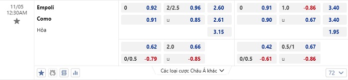 Tip kèo Châu Á full trận Empoli vs Como