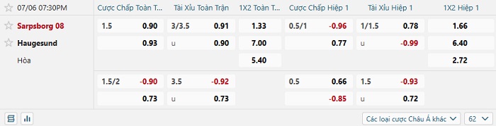 Tip kèo Châu Á hiệp 1 Sarpsborg vs Haugesund