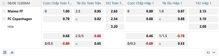 Tip kèo Châu Á full trận Malmo vs Copenhagen